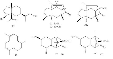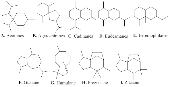 10-epi-γ-eudesmol (D21), β-agarofuran (D44), α-agarofuran (D49) |